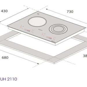 Kích thước khoét đá: 680W x 380D (mm)